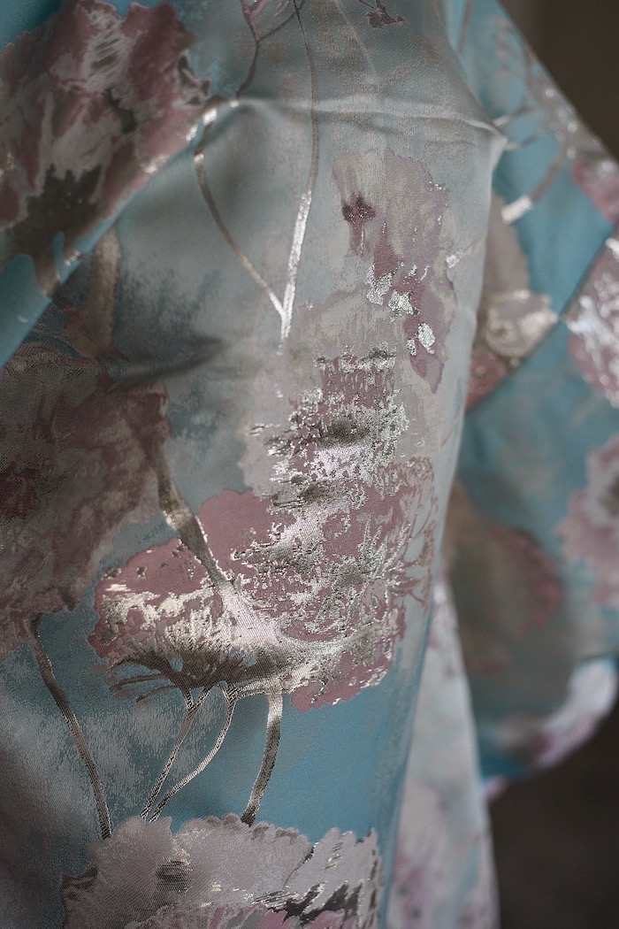 花のように美しい衣。 比喩的に女性の着物を指すことも。
