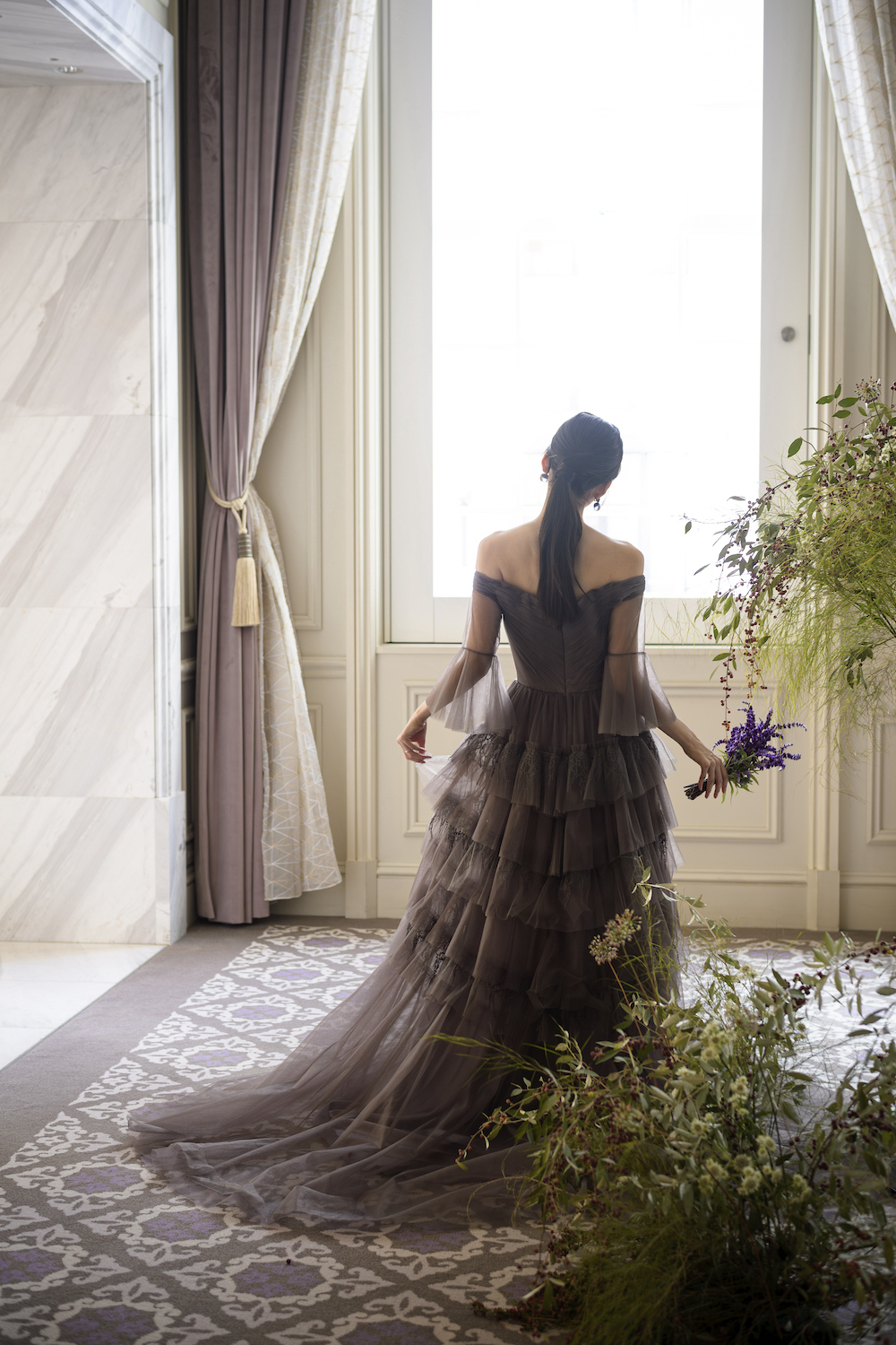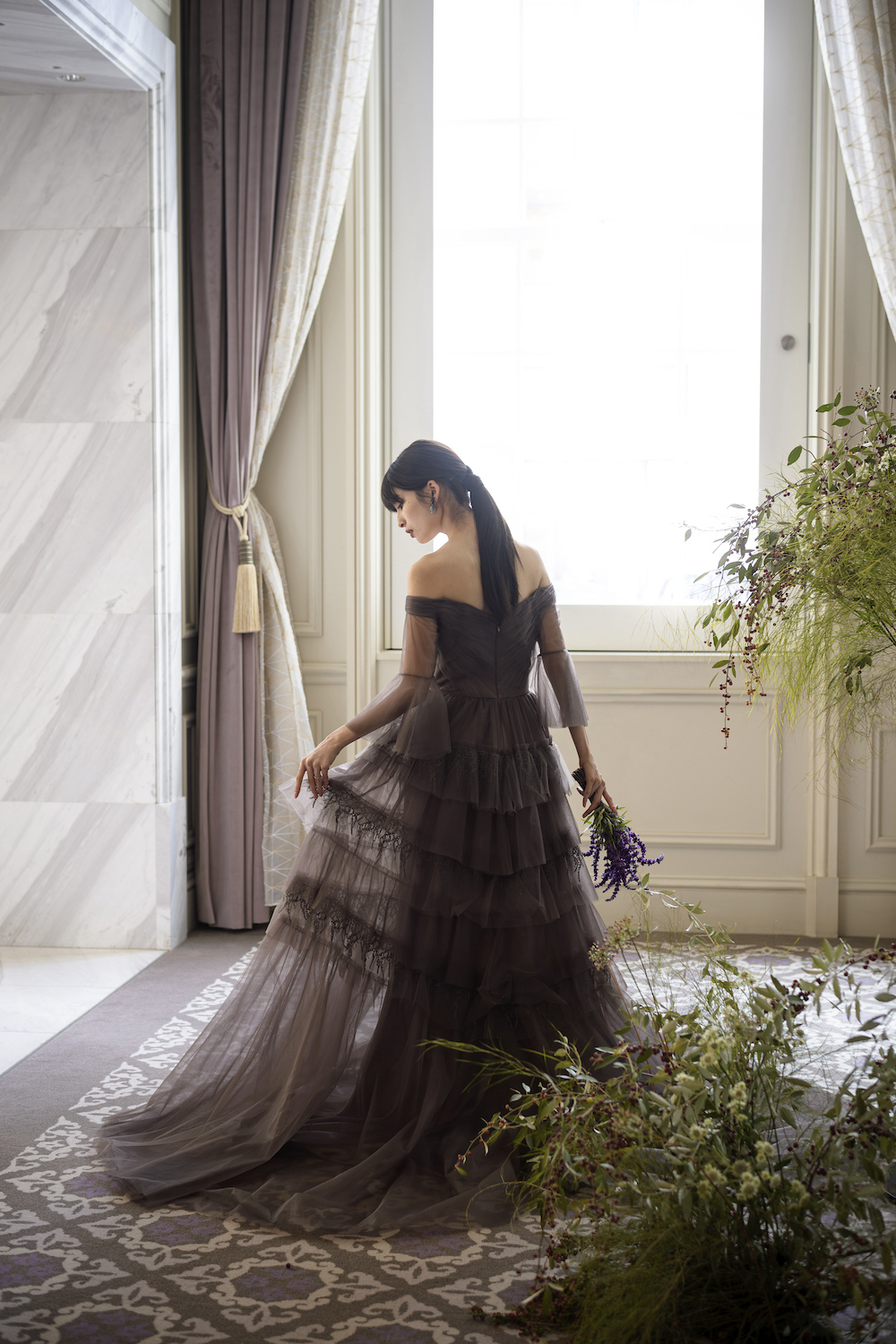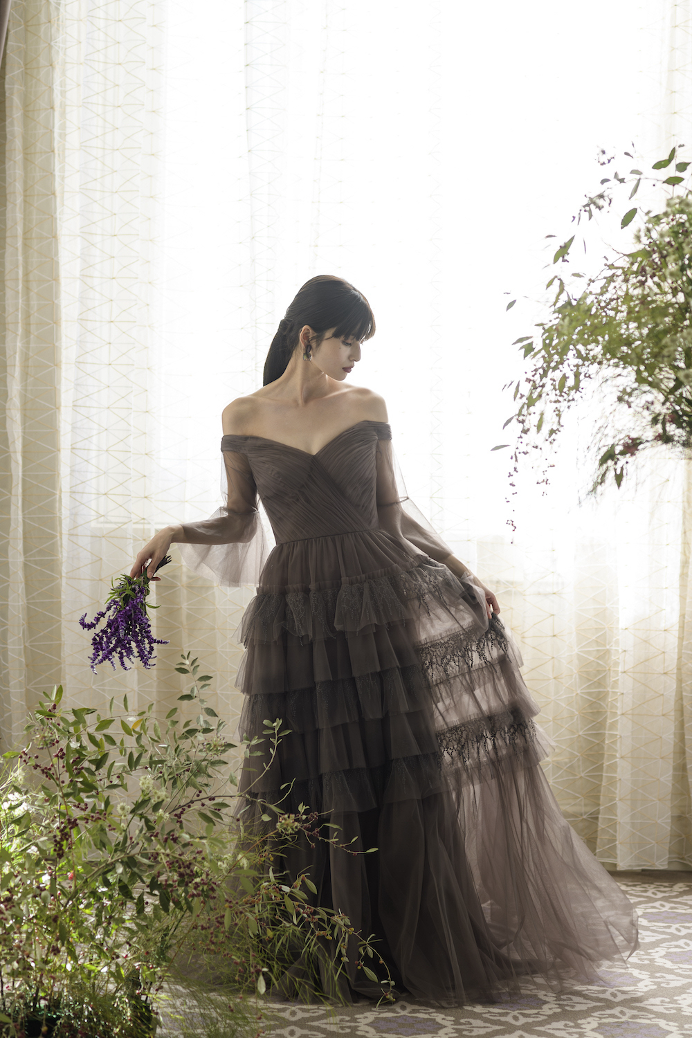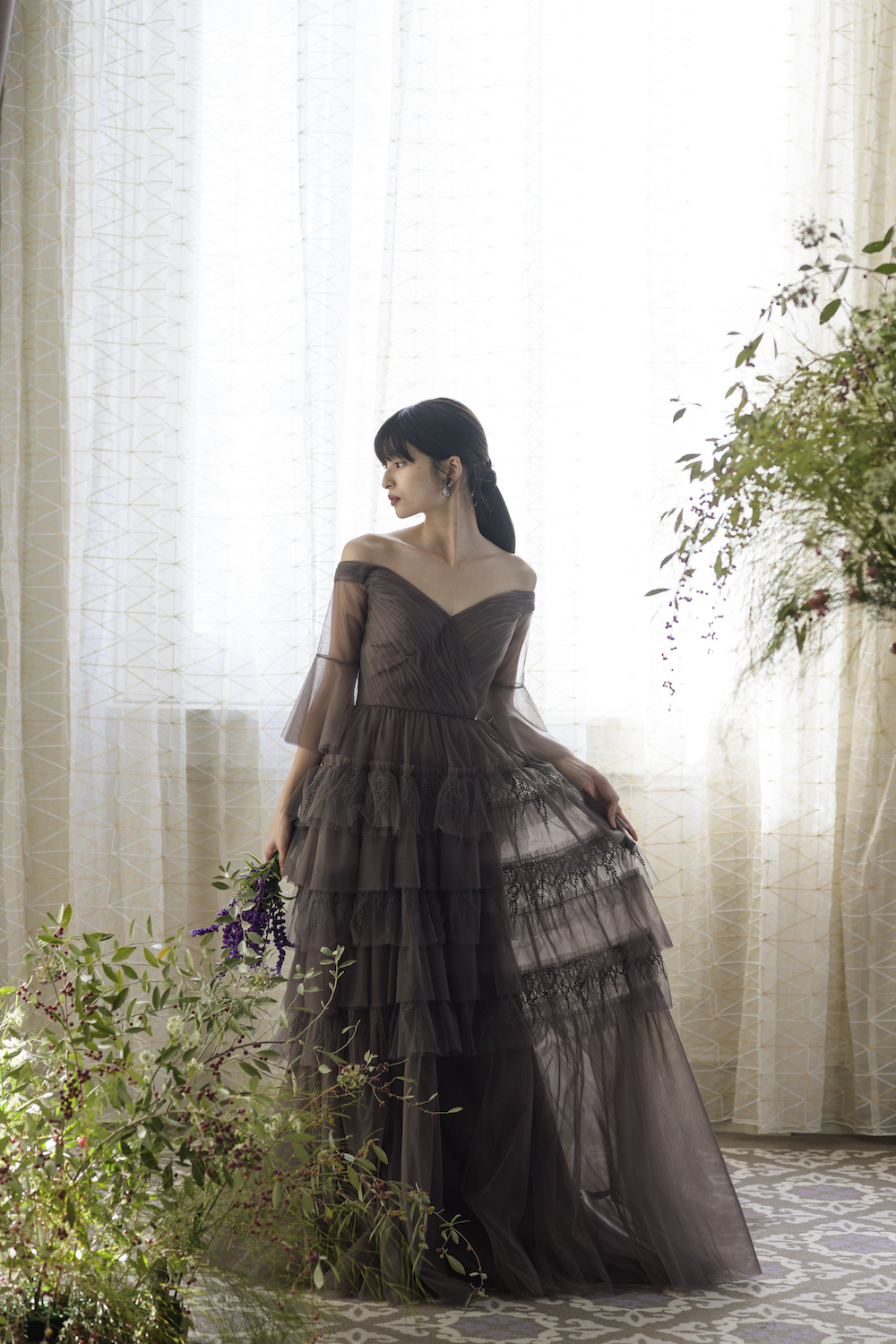 Juneberry どこかノスタルジックでヴィンテージ感のあるセピアカラーのドレスは、幾重にもレイヤードされたチュールと 6月の初夏に宝石のような実がなるジューンベリーのようなレースが特徴。お座り姿も美しいドレスです。 花言葉は「穏やかな笑顔」、「穏やかな表情」 レースはituwa別注のオリジナルカラーです。 ご試着予約