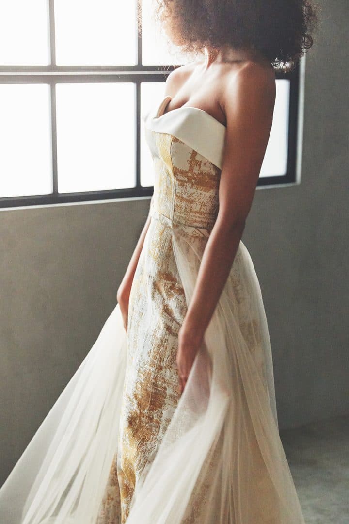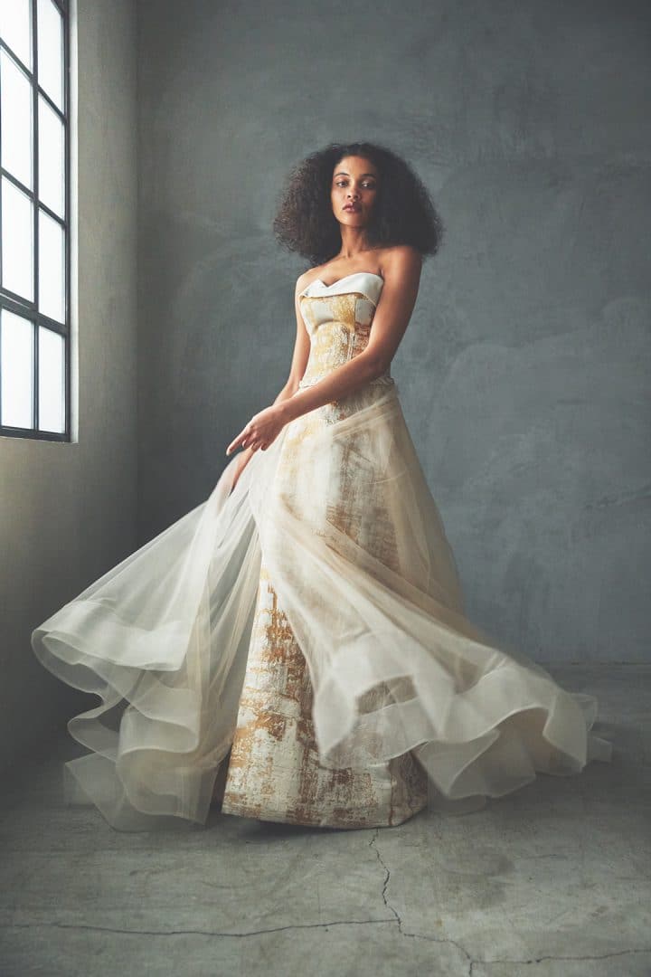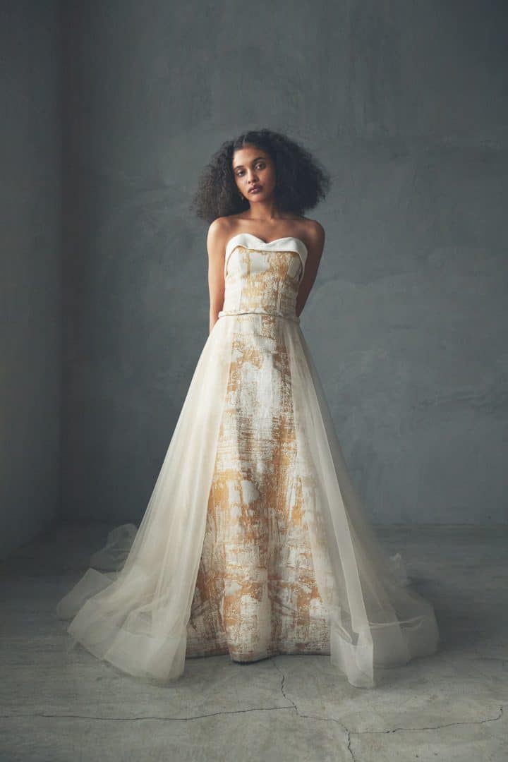 The dress incorporated Nishijin textile from Hosoo into the skirt where has a long history in Kyoto.
