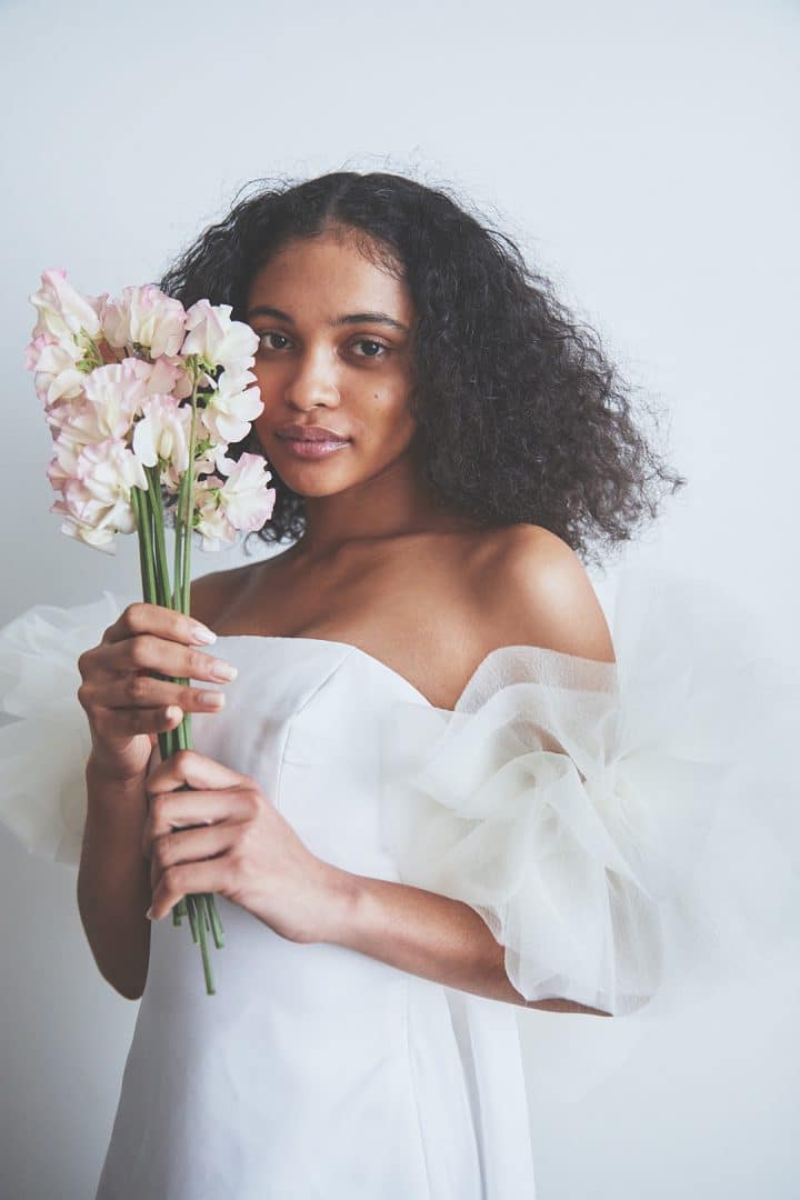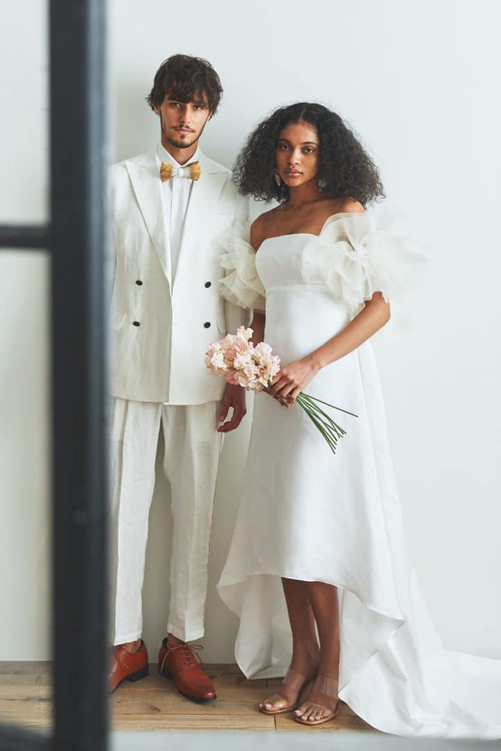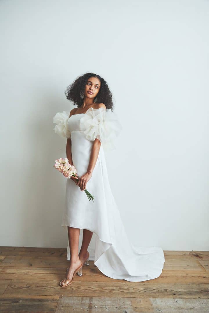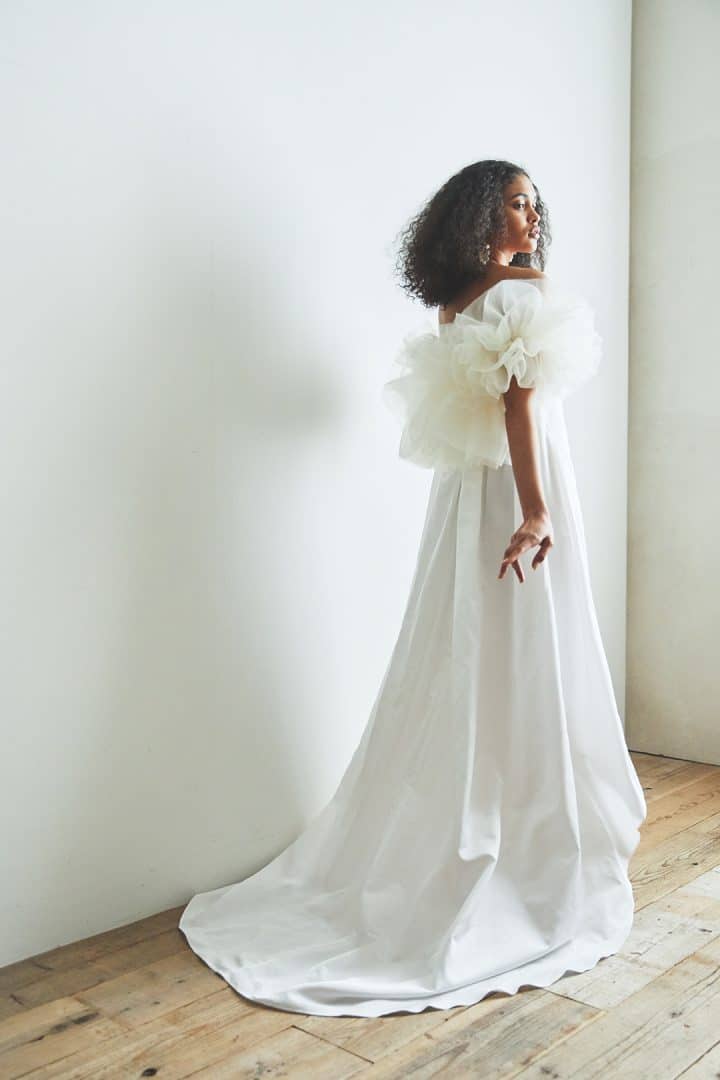 The shoulder and back designs are made of organdy with a texture like Japanese washi paper.