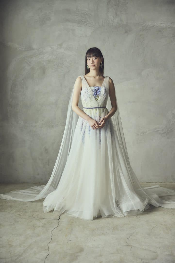 The print design incorporated art by Chiso where has a long history in Kyo-Yuzen in Kyoto, with colorful pattern associated as Japanese wisteria flowers.